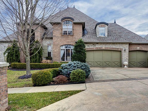 813 N. Thornapple Ln., Springfield, MO Beautiful custom all brick French Country home inside gated Windsmore Subdivision. Custom features include 6'' wall construction, recessed lighting, exceptional trimwork, including crown moldings, wainscoting, and solid core 8' doors on main level. The formal dining room features an arched stone wall. The chef's kitchen includes a gas cooktop double ovens, a huge island, pantry & built-in refrigerator. The butler's pantry has a barrel vault ceiling, an abundance of cabinets, wet bar and wine refrigerator. The kitchen-hearth room spans the back of the house and has floor to ceiling windows. Outside you will find extensive landscaping, a covered screened porch along with a large deck, all backing up to a neighborhood walking trail.