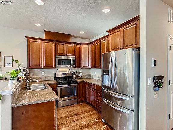 Nice townhome sits on a corner lot and has ample parking. 3BR + den/office. Includes a lot of nice upgrades like granite, hand scraped engineered wood floors, central air and Gas fireplace. Low maintenance exterior with large patio & raised beds.