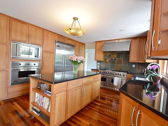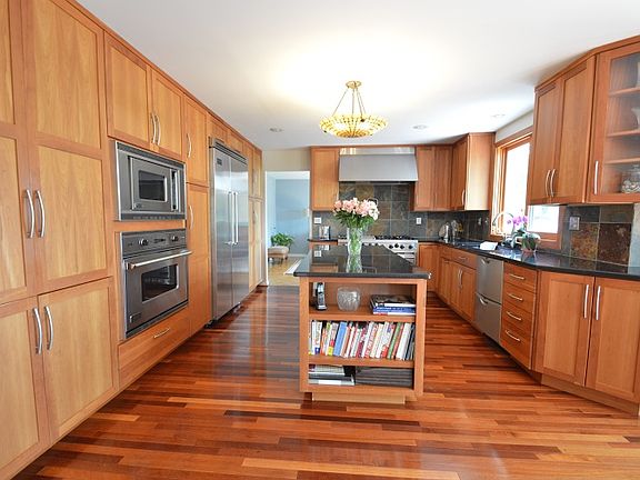 This is a beautiful contemporary home with magnificent views of open space with expansive landscaping. With 6 bedrooms, 3 full baths, 2 powder rooms, attached and finished 3 car garage plus 2 additional under cover parking spaces, 3-year old heated saltwater pool, pool house, golf green & bunker, this is complete year round living. Walking into this recently refurbished home you are greeted with a 2 story foyer and a wall of windows to bring in natural sunlight complete with Hunter Douglas motorized shades. The magnificent chef designed kitchen has Viking appliances, Miele dishwasher, custom cherry cabinets with lighting, black granite countertops & Brazilian hardwood floor. If you like to cook, this is your kitchen with 3 Viking ovens, a six-burner stove w/griddle, pot filler, convection microwave & side by side refrigerator. Walls of sliding Pella doors with integrated shades open onto the park-like setting of the backyard, with an expansive TimberTech deck with motorized, retractable awnings overlooking the golf green, pool & open spaces. The Family room has a stone fireplace along with being open to the kitchen and the first-floor study or playroom. The large master bedroom has sweeping views of the backyard. There is a large walk-in closet, an additional wall closet and recently remodeled Master bath with his & her vanities, a multi-use shower, whirlpool tub, & separate toilet area. The 3 additional upstairs bedrooms are large, and each have spacious wall closets. The self-contained in-law-suite, reached either by staircase from the garage or through a secret door in the back bedroom, has a full bath, kitchenette, loft & 2 story ceilings. Adding more, this home has a gym and a huge pool house that is great for entertaining overlooking the private destination pool and resort-style surroundings. There is a new roof, driveway, washer & dryer, energy-efficient tankless hot water and LED lighting and fixtures throughout. Move right into this updated, open & light filled home. 2021-07-24