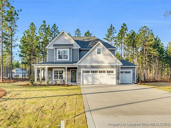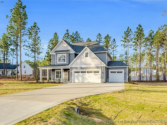 Your personal retreat nestled among the pines! The Aiken Plan built by A&G Residential offers 2,452 sq ft of living space with 4 bedrooms and 2.5 bathrooms. Floorplan features include a formal dining room that is open to the kitchen with spacious island. The kitchen has a breakfast bar adjacent to the two-story living room. The owner's suite is on the main floor and boasts a tile shower, dual vanities, and a walk-in closet that connects to the laundry room. Upstairs includes 3 additional bedrooms, a full bathroom, and a loft. You will enjoy the perks of having a 3-car garage and lots of space to entertain outdoors! Large lots and winding streets, with a convenient location with an easy commute to Fort Liberty and I-295! Schedule a tour at Kingsbury Ridge today!
