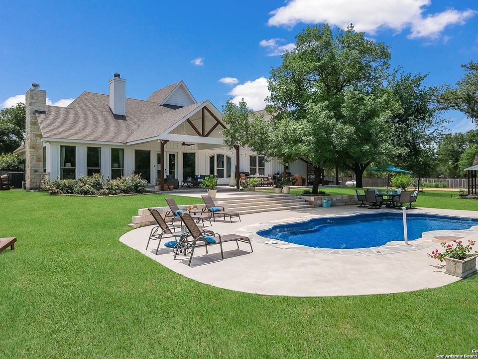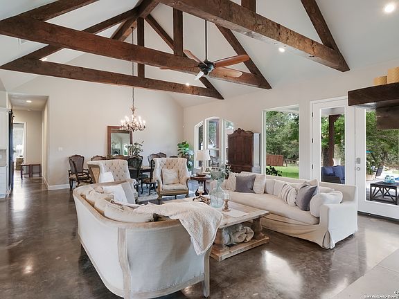 Introducing your dream estate! This exquisite property in Shannon Ridge boasts a luxurious 4-bedroom, 3.5-bathroom home with a flex room and a casita, all nestled on a sprawling 7-acre lot with a charming seasonal creek running through the backyard. The house is a masterpiece of design and quality, showcasing a modern open floor plan with soaring 18-foot ceilings, large windows flooding the space with natural light, and top-notch craftsmanship evident in every detail. From the custom architectural features and elegant chandeliers to the stacked rock fireplace in the living room, every corner of this home exudes sophistication. The heart of the home lies in the Chef's kitchen, equipped with a stunning island, custom cabinetry, premium appliances including a gas range stove, double oven, and a commercial-grade vent hood. wait until you see the spacious walk-in pantry with hidden storage! The primary suite is a serene retreat with high ceilings, a gorgeous floor to ceiling fireplace, walls of windows to enjoy the views of the outdoors, a glamorous walk-in closet, and a spa-like bathroom featuring granite vanities, a luxurious soaking tub, a walk-in shower with heated ceramic flooring. The master bedroom closet has it's own washer and dryer connections! Additional features on the first floor include two custom bedrooms with a jack and jill bathroom, and an oversized laundry room and an oversized garage. Upstairs you will find inviting guest suite with a full bath with a wet bar and french doors leading out to a beautiful balcony. This upstairs room is large enough for a living area /bedroom area or living and dining area, with another room that could be a bedroom/flex room or closet. Also upstairs is a large office/bedroom with roomy closets. The outdoor space is an entertainer's paradise, offering a sparkling pool, a covered patio with wood-paneled ceilings, and a detached casita with a loft bed and details that mirror the main house. The land has MASSIVE Live Oaks and room to explore. In the pool and on the back patio, the views of the sunsets are incredible. Room for horses and 4H and FFA projects and a daily dose of watching the deer and turkeys explore the land. 3 HVAC Units, spray foam insulation, wired for security, WiFi sprinkler system in backyard, salt water pool fiberglass pool, 24 x 30 concrete slab ready for building. With meticulous attention to detail, quality finishes, and thoughtful design elements throughout, this home is a true gem that must be seen to be appreciated. Don't miss out on the opportunity to make this stunning property your own!