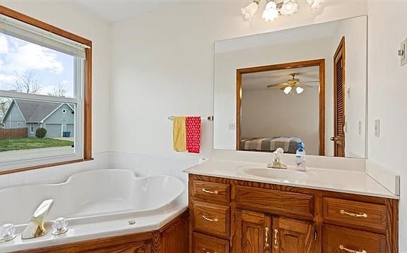 STOP THE CAR!! West side home in a sought after neighborhood in Excelsior Springs. Check out this 1.5 story home on a large corner lot. As you step inside you will notice the TALL ceilings with really cool walkway upstairs. Large living room leads to kitchen. Kitchen includes granite counter tops and lots of counter space. All appliances stay. On the main floor is the master bedroom with master bathroom. There is a half bath on the main floor as well. Upstairs are 3 more bedrooms!! Full bath in the hallway. Downstairs is unfinished, but includes a full bath. Lots of room to build added rooms or finish a family room. 2 car garage. Large deck out back.