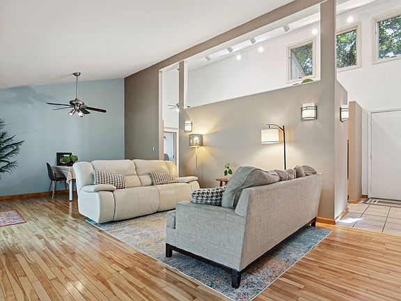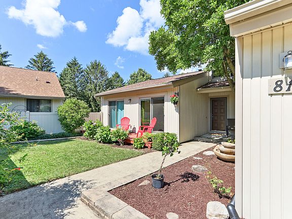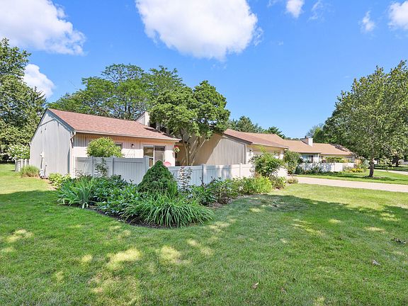 Welcome to this incredibly unique detached zero lot home! Situated on a cul-de-sac with views to an expansive amount (1acre) of the tree lined commons beyond the fenced in yard. Use the commons area beyond the fenced in yard for extra recreation. Privacy like no other and beauty everywhere you look. Inside, the home is sleek and contemporary in a soft and comfortable way. Windows and sliders allow an abundance of light. The kitchen has beautiful Luther Falls cabinetry. These sellers added additional cabinetry in the kitchen as well. 4 sets of sliders were replaced. Wood burning fireplace. Hardwood floors. Nice size (520 sq.ft.) wrap around decks to enjoy the mature and fully landscaped and established perennials and trees within the fenced in yard. Numerous trails leading to a city park and Mattis Lake and Harvest Market supermarket. Centrally located. The crawlspace is fully lined with 2 sump pumps and a commercial dehumidifier. Fence-2023. Roof-2024. See the drone footage of the property and extended commons. Walk up attic space. Monthly fee is $106 and includes garbage, mowing, snow removal and use of the pool, tennis courts, playground and clubhouse. This home is an absolute PLEASURE to show and has been meticulously and wonderfully card for.