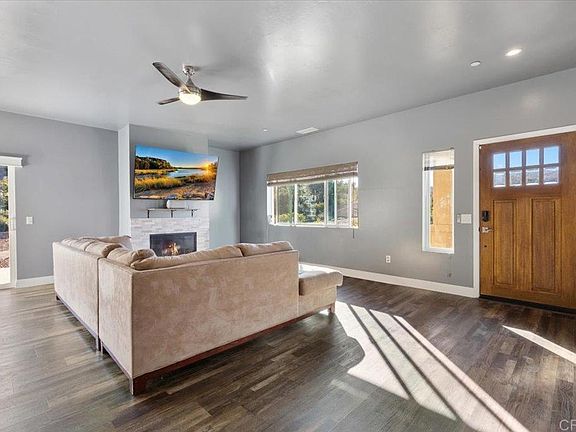 Welcome to your dream home! This pristine 3-bedroom, 2-bath retreat, built in 2020, combines modern luxury and comfort with 1,820 sqft of open living space on a spacious .31-acre lot. Perfectly situated In Harbison Canyon near Sycuan Casino and Resort and Singing Hills Golf Course. Step inside to discover an inviting, open floor plan with dual-pane windows throughout, and a beautiful fireplace in the living room. The kitchen is a chef's delight with sleek stainless steel appliances, plenty of cabinet space, and an open design perfect for entertaining. The large primary suite is a true sanctuary, complete with a walk-in shower, dual sinks, and a large walk in closet. Enjoy a newly landscaped backyard with lush turf and a large, versatile space perfect for entertaining, from cozy gatherings to lively celebrations. The backyard’s expansive concerted area provides a blank canvas, ready to be designed to match your lifestyle, with endless potential for furniture, fire pits, and more. There’s room to park your recreational toys, plus a handy shed for extra storage. With solar, well-maintained features, and spectacular views, this home is truly a MUST-SEE. Embrace the lifestyle you’ve dreamed of, with all the privacy and space you could ask for!