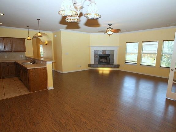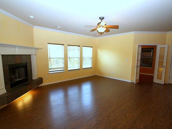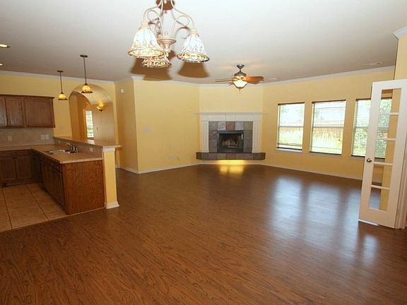 Great Brick Custom family home on a cul-de-sac st w storage bldg. in highly sought after Aubrey ISD & Brockett Elementary*Landscaped front and backyard*Custom front door*Several Arch ways, decorative lighting*Open floor concept with wood burning fireplace*Galley style kitchen with large bar opens to large living*Newer vinly wood flooring thoughout!!Study and eating area off living room*Large master bedroom w ensuite*Jacuzzi Large walk in closet w double sinks & separate Shower*Large enclosed covered porch w Heat & air window unit*Wood Fence getting repaired from last storm*Owner already relocated*Yard will be cared for this week