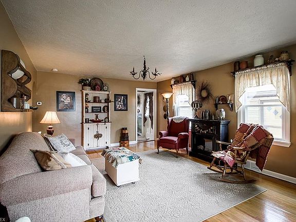 Cute and well maintained bungalow in a very convenient location! You're greeted by wonderful curb appeal and a welcoming front porch with newer vinyl railings. Enter into the living room with hardwood floor and an abundance of natural light. The spacious kitchen has newer flooring plus plenty of room for a dining table and includes the stove and refrigerator! Down the hall, you'll find two nice sized bedrooms and a full bath with newer vinyl flooring. Upstairs, you'll find the third bedroom with higher ceilings than most bungalows! The full basement includes a half bath and tons of room for storage. Outside, there's a paver patio plus walkway leading to the garage with carport. Updates include Roof 2010, Furnace + A/C 2014, Windows 2014, Garage door + opener 2014. (All dates approximate) Nicely updated, neutral throughout and move in ready!
