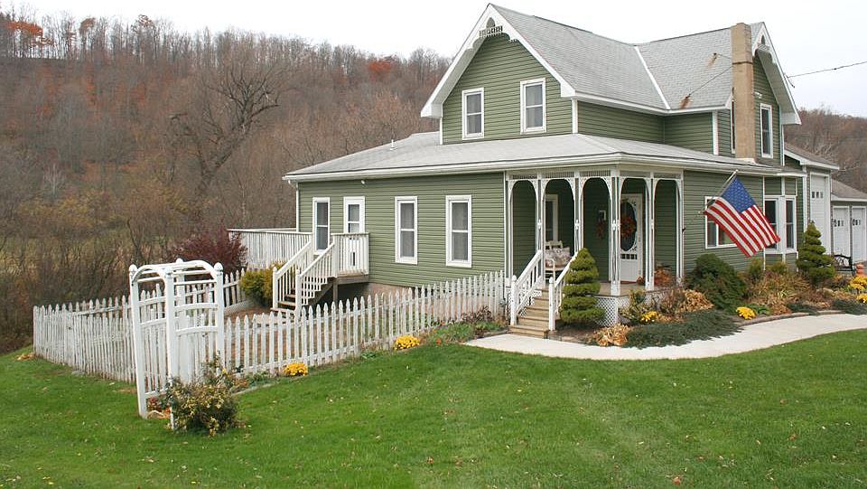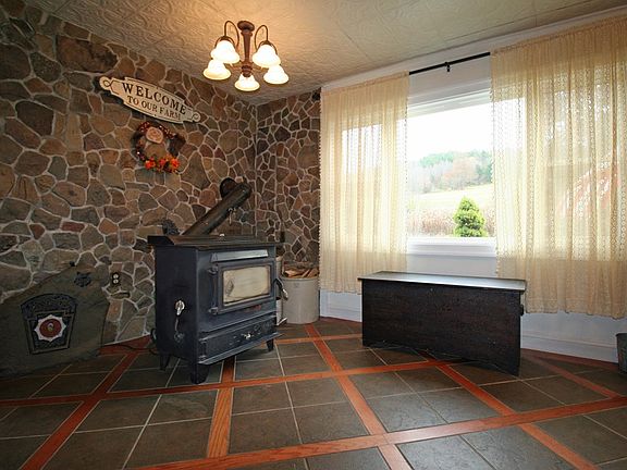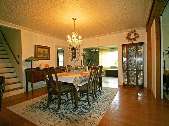 Stunning property in a quiet country setting. This 2-story farmhouse has been lovingly remodeled to modern standards retaining its yester-year country charm. The first-floor features oak hardwood floors thru out, with tile in the bathroom, foyer, and mudroom. Exposed wood beam, wood trim, and crown molding are a perfect accent for the tin ceilings. Kitchen features granite counter tops with warm wood cabinetry, next to a large dining room perfect for entertaining. Three bay detached garage has an 5.5 ton lift behind a 12 foot door makes a perfect work area. The barn is in good condition and still retains its horse stalls. Enjoy entertaining guests on the back deck, or just appreciating the stunning views. This property also has the added distinction of 2 water features, with not only a spring fed pond, but also a small stream lazily making its way across the property. Open fields are home to food plots and old logging roads make a great trail system. Call today for showing!