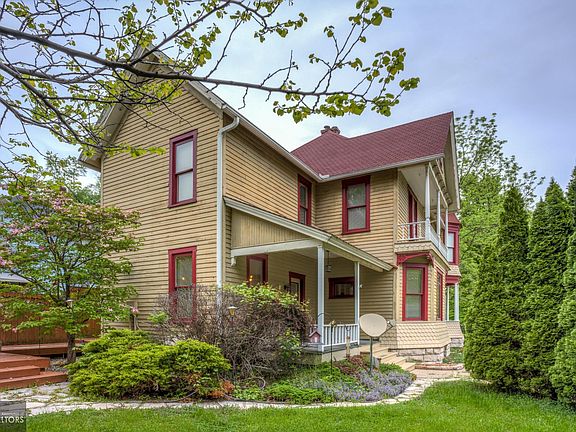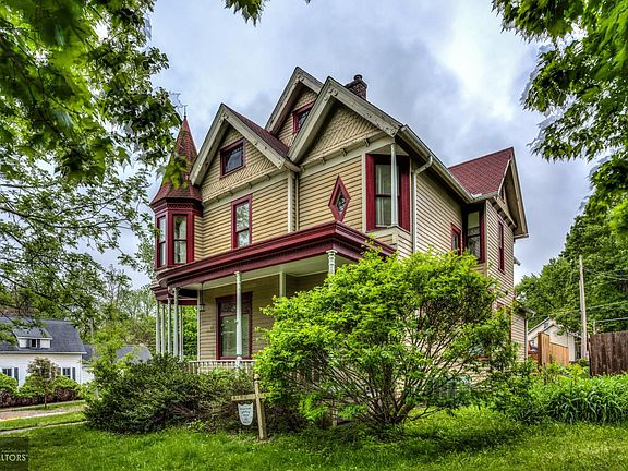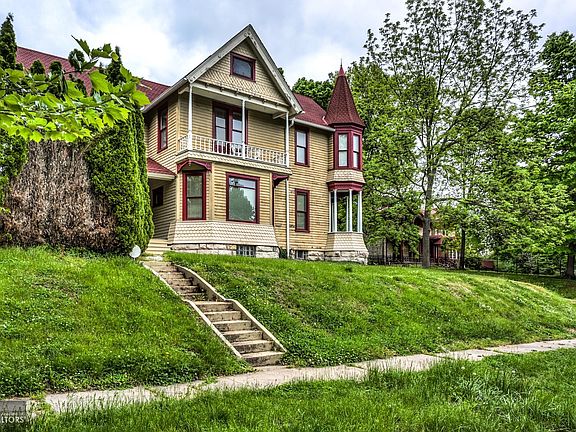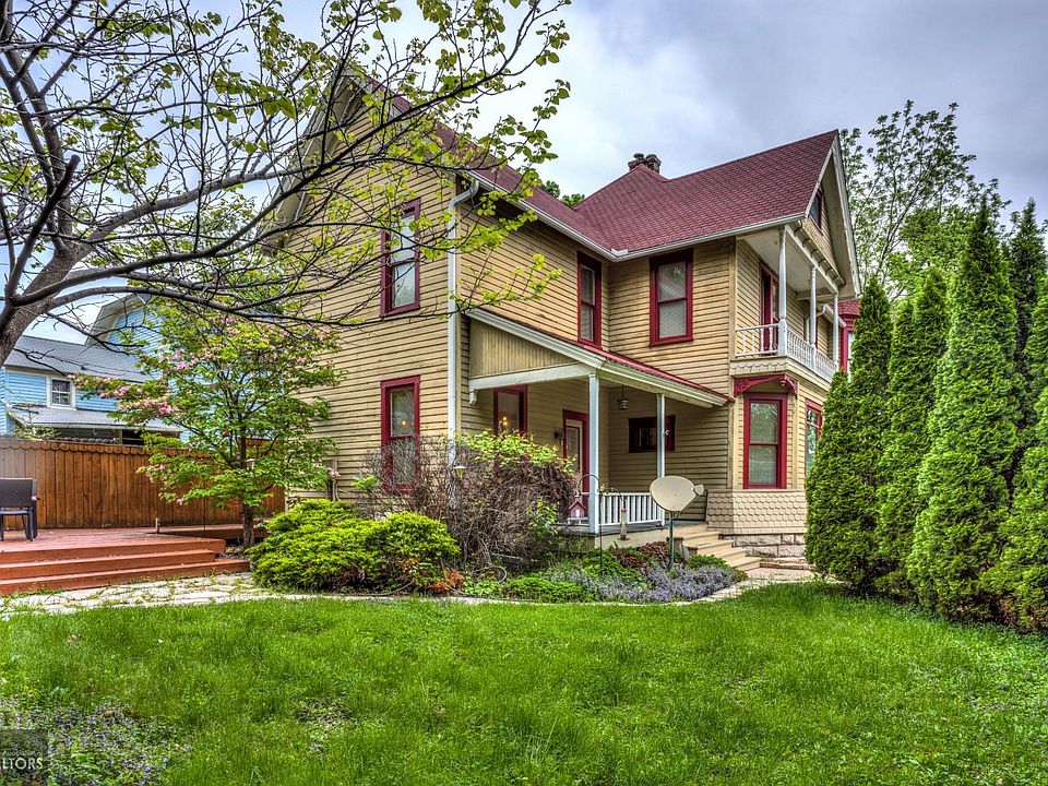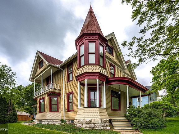 Charming Queen Anne two story home with fantastic original woodwork, open staircase, great moldings and character. Main level features spacious kitchen with island and hardwood flooring, living room with colonnades, pocket doors, dining room and a half bath. 2nd level features 3 bedrooms, balcony, full bath with double vanity and tile, laundry is conveniently located on 2nd level. Walk up attic. Lower level features updated furnace, game area and great storage and work bench area. 200 amp service. The exterior deck is great for outdoor living and is a wrap around from kitchen exit door, privacy is afforded by a row of arbor- vitae trees. Off street Parking with 2 car shelter. Storage shed will remain. If you just drive by you will miss one of the finest interiors in Burlington. Call to preview.