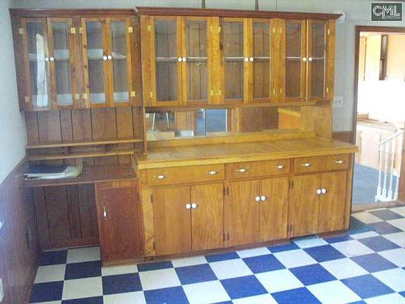 - Kitchen: Eat In, Island, Bay Window, Cabinets-Stained, Floors-Vinyl