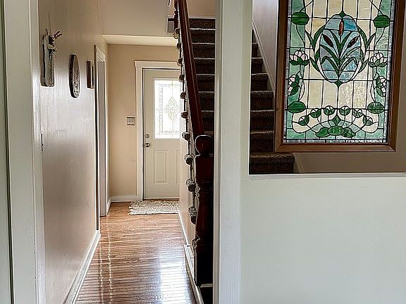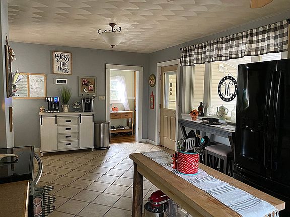 3 huge bedrooms all with new wall to wall carpet, a “bonus room” we use as an office but could potentially be a 4th bedroom, 1 whole bath with a double sink and duel shower head, a half bath with washer and dryer, eat in kitchen with a brand new dual sink, formal dining room, living room and family room with a brand new pellet stove. Unfinished basement with a bathroom(unsure if it works). Huge back and front porch. Detached garage with electric.