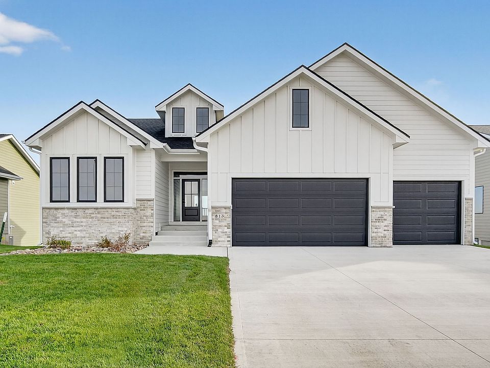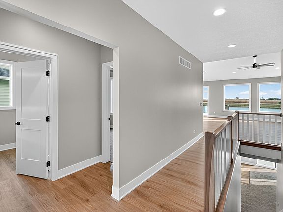 New home in Grimes' latest development, Hope Meadows. This 5 bedroom, 3 bathroom Walnut Ranch home by John Larson Homes upholds his reputation for quality and function with a lot of natural light. The large windows spanning the back of the home provide a stunning view to the pond. The oversized third stall garage is a plus providing a perfect work space, storage or a larger vehicle. You'll find quartz countertops throughout as well as LVP flooring, tile floors and a tile shower in the primary en suite. You'll love the 9' ceilings on the main floor and in the lower level as well.