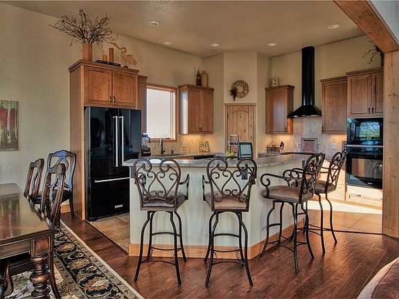 Custom built log sided home sits on 2 acres and comes fully furnished with WALL OF WINDOW SNOWCAPPED MOUNTAIN VIEWS bordering 93+ acres of Open Space leading into National Forest. Features hardwood floors, leathered granite countertops in the kitchen, 11' ceilings, wood stove and beetle kill T&G vaulted great room and loft ceilings. There is both a main level master suite and junior suite. Master suite features a walk-in closet & private deck entrance. TREX decking and an OS heated 2 car garage.