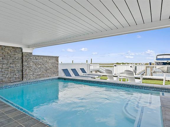 This latest Tom Welsh version town home has been designed so that the first floor has 2 generous size bedrooms as well as two full bathrooms. The second floor reveals a spacious living room with fireplace and dazzling bay views, adjacent dining room, chef's kitchen with large center island, and one a bedroom suite with private bathroom. The third floor has an office or den as well as 2 additional bedrooms each with full bathrooms. This property also includes an outside shower, 10 x 8 garage, and a fenced in back yard with pool. There are unobstructed views of Cedar Island wildlife preserve and the inter-coastal waterway. Boaters the property also has a dock, boat slip with a boat lift! Property has a 22KW Generator. This property is being sold furnished minus personal items