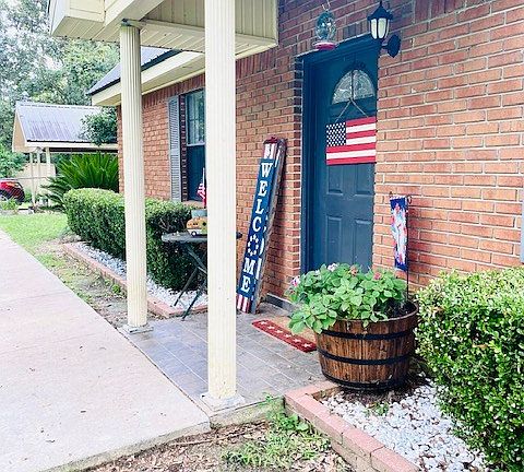 Tucked away under lemon trees, blueberry bushes, roses', and pecan trees lies a cozy and inviting home. Enjoy your privacy as you sip your coffee and overlook your secluded pond. This 3 bedroom 2 ba features a tastefully updated kitchen and eat in dining area, a huge laundry with storage and space and a beautiful master bathroom! Enjoy 2 very private acres with a large carport and air conditioned man cave area as well! This home simply has it all! Live your best country life and also only minutes from the interstate!