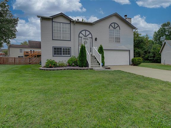 Discover this charming 3-bed split-level with loads of curb appeal in highly rated Ft. Zumwalt So. School Dist. As you step inside, you'll notice the newly installed carpet on the stairs that lead to both levels, and luxurious vinyl plank flooring throughout, offering both durability and style. This light and airy open floorplan features a great room w/ wood burning fireplace and an in-ceiling speaker system. The kitchen boasts beautiful wood cabinets, tile backsplash and newly installed SS appliances, sink and garbage disposal. Breakfast room w/ slider leads to a 10x12 deck overlooking the large level fenced yard. Enjoy endless outdoor gatherings on the 42'x13' patio. Fresh interior paint, updated bathroom fixtures, and smart features like a Nest thermostat, smart garage door opener and doorbell enhance your living experience. LL features 3rd bedroom or home office, laundry room and storage w/ rough-in plumbing for future finish. AC unit replaced in 2017. Quick access to Hwy’s K & 70.