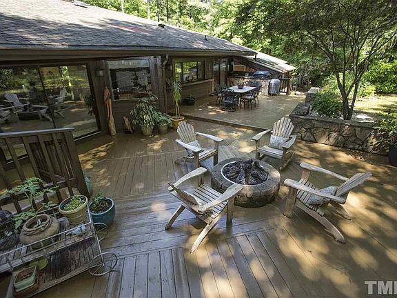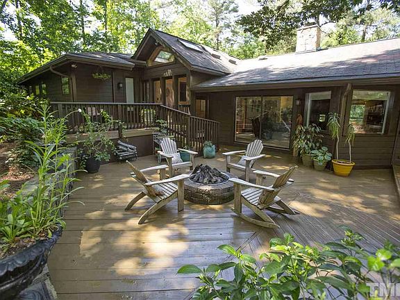 CONTEMPORARY ELEGANCE IN N RALEIGH! This unique custom home hosts your dinner parties and large family gatherings in comfort and style. Two-sided FP, sunken living room, formal dining, eat in kitchen w/Granite/SS, sliding door to fabulous fire-pit deck and back yard, croquette-ready front yard. Side-entry art/mud/office/play sky-lit room w/captains lookout loft and built-ins. Central solarium, steps up to sep Laundry and BR wing/Master has bath with spa-like upgrades. EXTENSIVE LANDSCAPING! MUST SEE!