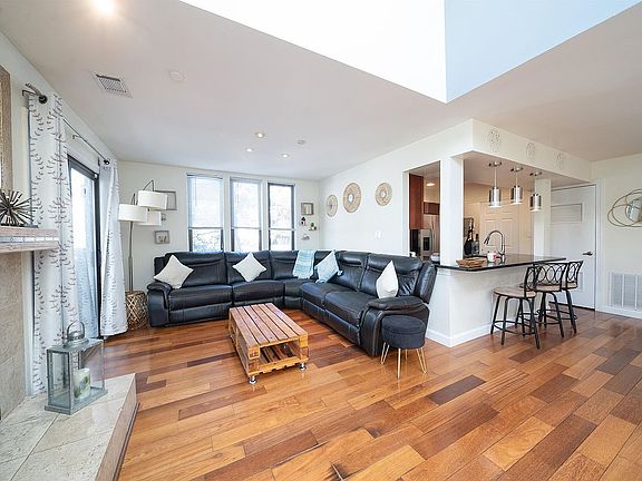 Beautifully and completely updated, triplex townhome in the prestigious Harmon cove Townhouses. Gorgeous kitchen with S/S appliances, hardwood floors, updated bathrooms, magnificent fireplace, bright and sunny, skylights in the living rm, 2 balconies, corner unit - overlooking the pool. 2 car parking, storage, commuters dream - close to NYC with public transportation at your doorstep! Amenities include - pool, 24 hrs security, etc. A must see!!