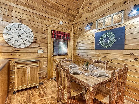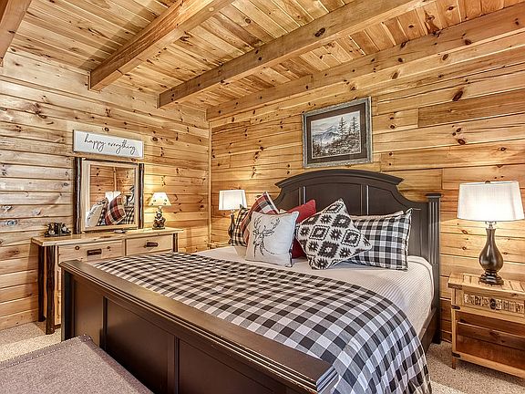 This Cabin is located 5 minutes from Dollywood and is a Rental Machine with $60k Yearly Gross Rentals...excluding taxes and booking fees. Professionally decorated...wrap around porch...easy 2 step entry...level parking for 3 cars...and no steep roads! This property makes a great investment income property with nightly rentals, and needs nothing at all other than a new owner who acquires the current rentals, and is the perfect self-management property. King and Queen Bedrooms and sleeps 6 with the queen sofa sleeper. There's plenty of room for entertaining...with 600 sq.ft. of covered decks and Hot Tub. With the creek and playground, this property is absolutely the best for Families and Couples!