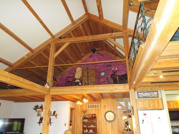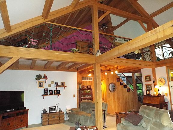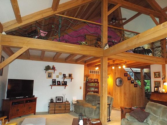 Custom built Post & Beam Home on 5.2 acres! Vaulted ceilings, exposed beams, custom decorative metal railings, ground source heatpump, 33' above ground pool, 16x 20 shed, steel framed deck. Additional storage building.