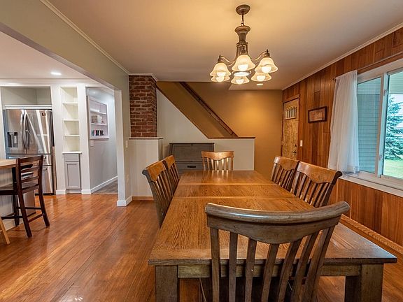 Great space INSIDE AND OUTSIDE In town location on just under 1 1/2 acres Many improvements throughout this home and offering 4-5 bedrooms Master bedroom is on the main level near a remodeled bathroom offering dual sinks and tile surround tub/shower. Also on the main level is a huge kitchen/dining area and a Great room with a gas fireplace Kitchen offers 2 pantry spaces and stainless steel appliances. The great room leads you to a large outdoor living space with composite (maintenance free covered deck through a 8 FOOT SLIDING GLASS DOOR The upper level offers 2 bedrooms with built -in drawers. The basement offers 2 more options for bedrooms(not egress windows and a REC ROOM OUTSIDE FIND THE 4 CAR GARAGE 2 car spaces are heated AND a park-like setting in your large back yard So much to offer and close to town. Windows, siding, bathrooms, electrical, kitchen have all been updated. Home includes a tankless Hot Water Heater(2018. Poured concrete crawls.
