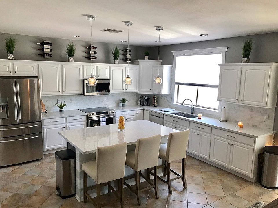 Beautifully renovated kitchen with huge stainless sink & appliances. Gorgeous high end Cambria Quartz counter-tops and marble back-splash adorn white cabinetry. A massive kitchen island will be the center of attention for entertaining your guests for years to come. No HOA on nearly a half acre lot with a POOL! You can't find that in the heart of the city! Built in 1999. 4 beds and 2 baths