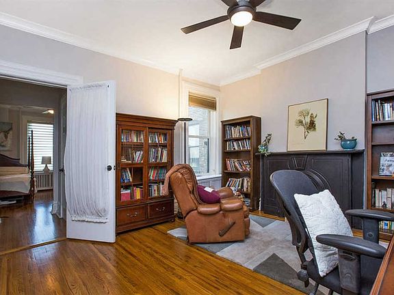 BEST priced 4 bedroom on the market- hands down!!!!! Beautifully maintained, this classic picture perfect home in the heart of Hoboken offers an abundance of space and an incredible flow that makes the condo feel like a true âhomeâ. Resting on the entire floor of a classic brick row house, this 4 bed plus den 2 bath home features high ceilings with crown molding throughout, magnificent period details, hardwood floors, an abundance of storage including several built-ins, a walk-in closet, storage above the closets and an 8 x 12 designated storage space in the basement. New sound canceling noise windows, Hunter Douglas electric blinds, in sink water filter, upgraded baths, jacuzzi tub, spacious kitchen with island and a large dining area add the the appeal. Full size W/D in master bedroom, newer hot water heater and shared yard complete the picture. Heat included in HOA. NYC transportation including bus (on corner) and PATH train close by. Hoboken Elysian Park as well as Church Square and Columbus park a short distance from the home. Rental parking available at 916 Garden. Open house Saturday and Sunday, June 2nd and 3rd from 2-4pm.