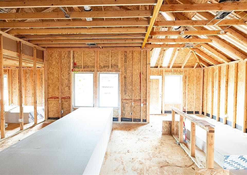 This Bogan floor plan includes 1,510 Sqft of total living space, which includes 1,400 Sqft of indoor living space and 110 Sqft of outdoor living space. There is also a 395 Sqft, two-car garage with a storm shelter installed. This home offers 3 bedrooms, 2 bathrooms, 2 covered patios, an office, and a utility room. The living room welcomes wood-look tile, large windows, a ceiling fan, and Cat6 wiring. The kitchen has 3 CM quartz countertops, stainless-steel appliances, wood-look tile, custom-built cabinets with decorative hardware, and stylish tile backsplash. The primary suite features noteworthy carpet flooring, a ceiling fan, Cat6 wiring, and perfect-sized windows. The upgraded primary bath offers a dual sink vanity with an elegant countertop selection, a tub/shower combo, an elongated water-saving toilet, and a walk-in closet! The outdoor living area is covered and has fully sodded yards with a water saving sprinkler system. Other amenities include a tankless water heater, a fresh air intake ventilation system, R-15 and R-38 insulation, an air filtration system, and so much more!