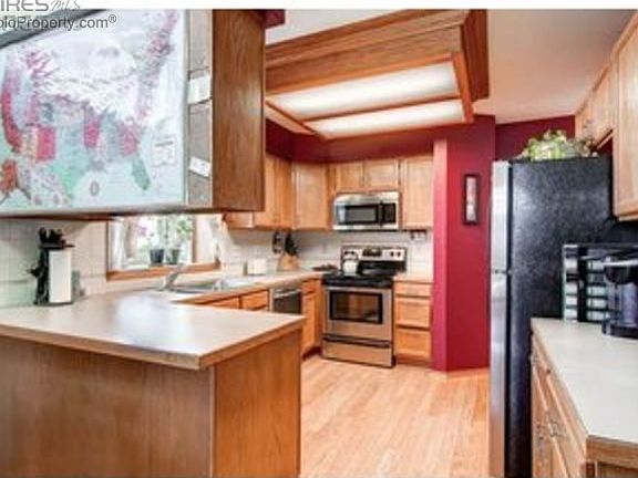 Nice Ranch style, brick home with 3 Bedrooms and 2 baths in a good neighborhood. This home features an Open Floor Plan with vaulted ceilings and Stainless Steel Appliances in the kitchen. The main floor Laundry area is directly next to the master bedroom for convenience. You can walk to Golden Ponds Lakes, ride your bike on the St Vrain trail or play golf across the street at Twin Peaks Golf Course. Backyard has a covered deck and fire pit with mature trees.