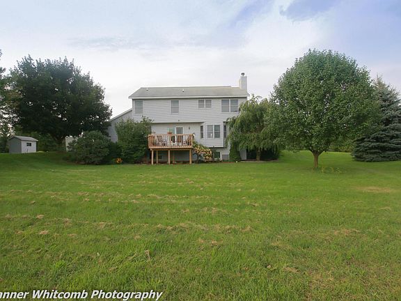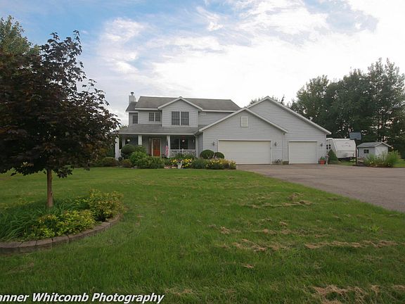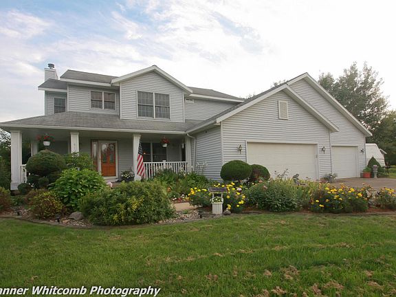Welcome home! This lovely traditional 2 story is situated on an amazing 3.36 Acres with frontage on a large pond with a fountain! 4 Bedrooms all on the upper floor with 2.5 baths. Private master with jetted tub and separate shower. Mainfloor laundry. Nice sized kitchen that's open to the family room with gas fireplace! Dining area has doors leading to the back deck overlooking the pond. Lush gardens surrounding the home and UG sprinkling. Unfinished lower level for future expansion. Wrap aroun d porch for that classic country farmhouse feel. New water heater, high efficient furnace, Natural Gas, storage shed with electric, 3 stall attached garage, Plenty of room to build that pole barn and so much more! Call today!
