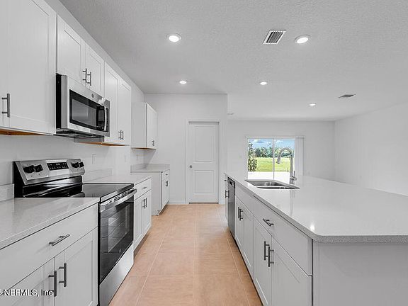 New Construction - Ready Now! Built by America's Most Trusted Homebuilder. Welcome to the Mulberry at 8130 Archibald Terrace in Coopers Meadow. This spacious home offers 2,106 square feet with 4 bedrooms, 3 baths, and a 2-car garage. Enter through the foyer to find a secondary bedroom and full bath on one side, plus two more bedrooms and another bath tucked behind the kitchen. The open kitchen overlooks the dining area and great room, which opens to a lanai—perfect for indoor/outdoor living. The private primary suite features double vanities, walk-in shower, commode, and walk-in closet. Coopers Meadow in Jacksonville, FL blends Southern charm with coastal beauty, offering scenic wetlands, a dog park, a certified Butterfly Garden, 7.5+ acres of recreation, and a playground. Additional highlights include: white cabinets and white quartz countertops throughout, Screen enclosure on lanai included, washer, dryer, and refrigerator included. MLS#2096403
