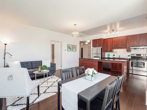 Bright & Spacious **Corner Unit** 2 Bed+Den/2 Full Bath In Immaculate Condition. 1141Sq.Ft. Located At The Heart Of Downtown Markham. Tasteful Finishes, Granite Kitchen Counter, Backsplash, Stainless Steel Appliances, Expansive 9 Foot Ceiling, Over-Sized Windows. Large Walk-In Closet In Master With 4 Pcs Ensuite Individual Bath And Shower. Walking Distance To Whole Foods, Restaurants, Cineplex, Entertain And More. Public Transportation, 407 Around The Corner.