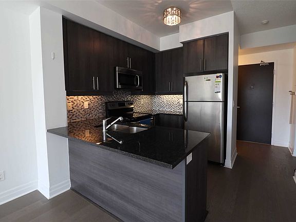 Downtown Markham Living With An Unobstructed South-West View. Bright & Spacious. Functional Layout, 1 Bedroom With Large Balcony. Laminate Flooring Throughout. Kitchen With Granite Countertop, Stainless Steel Appliances. 9 Ft Ceiling. Ensuite Laundry. 24 Hrs Concierge. Excellent Facilities: Gym, Hot Tub, Party Room, And Rooftop Terrace Access. Close To Highway 7, Highway 407, Go Station, Viva Transit, Ymca And Schools.