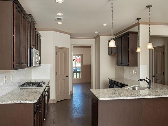 - Kitchen Features: Breakfast Bar, Cabinets Stain, View to Family Room, Stone Counters, Pantry Walk-In, Breakfast Room, Country Kitchen