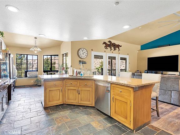 Wellness, peace, and tranquility found here. Highly upgraded custom built home in a serene and private location. ON PAVEMENT and ON NATURAL GAS with PRIVATE WATER WELL. This rare combination affords modern conveniences, combined with peaceful rural living. This property is well designed from the inside out. Driveway is completely gravel surfaced, and is accessed by paved Green Road. Triple driveway access allows for plenty of parking when entertaining, and also for RVs, toys, etc. Oversized two car garage with a work room located inside garage. The home has two entries, both with generous decks and ready for good old fashioned front porch sitting to enjoy this picturesque setting. Flooring inside is upgraded to Lifetime vinyl in the main living area. Open floor plan design with the wrap-around porch, plenty of indirect natural light enters the home. Dual heating, dual cooling systems with upgrades. Central air, central heat, with new attic ducting, evaporative cooler and cross-breeze design. If you’re new to the high desert, then you may not already know about the wonderful night time breezes, low humidity, and wonderful warm weather nights where you’ll enjoy allowing the screens to bring in a fresh breath of clean air. Central has heat plus a large freestanding wood burning stove, centrally located in the home, with a blower. Combined with a very large ceiling fan, and the design of the floor plan, the current owner uses this as the primary heat source in the winter. A corner fireplace in the primary bedroom suite adds cozy ambiance on winter nights. Split floor plan with very large primary suite with private deck access. En suite includes separate water closet, shower, soaking tub, and seated vanity. Plenty of built-ins, niches, and storage cabinets throughout the home so everything has its place Upgraded hall bathroom with wainscoting and upscale fixtures. Kitchen is dual tone custom cabinetry, granite sink, RO drinking water, instant hot water, and don’t forget that the house water is from a healthy well, and filtered through a Rainsoft water softener system. Upgraded appliances and fixtures. Walk-in pantry. Natural edge granite counters. Bedroom closets have custom built-ins. All bedrooms are quite large. Many other custom features which can be experienced with a private showing. Plan to spend a good while here when viewing as there is so much detail to learn about and appreciate.
