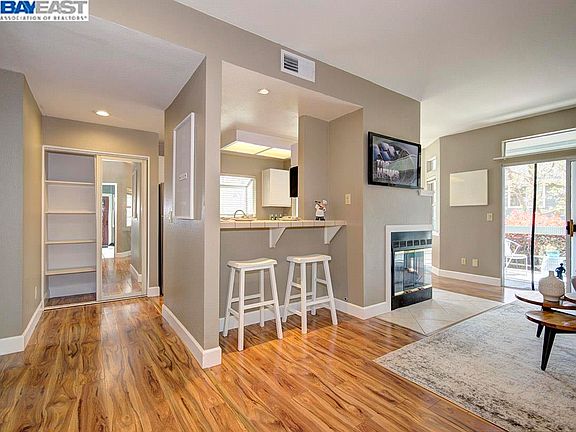 Welcome to this beautiful home located in the quiet Canyon Meadows community of Pleasanton. Top rated schools! This updated end-unit condo is filled with natural lighting, views of rolling hills, 2 patios, hardwood flooring, 1-car garage and 1 assigned space. Kitchen features includes breakfast bar, stainless steel appliances, bay window and more. HOA amenities includes club house, gym, 2 pools, volleyball, basketball and tennis courts. Conveniently located near shopping mall, restaurants, BART and easy freeway access. Perfect location for those who want to enjoy the best of both worlds - a peaceful retreat from the hustle and bustle of city life while still being close to all the amenities that Pleasanton has to offer.