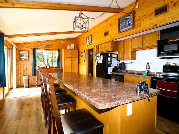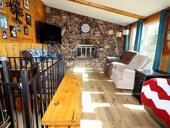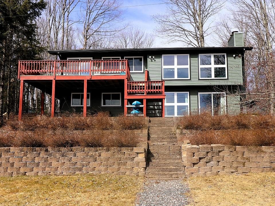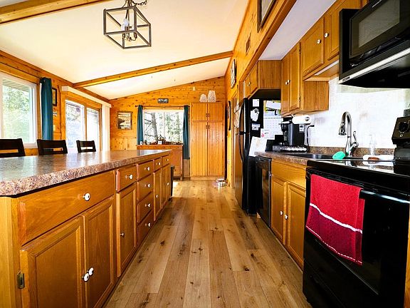 Nestled on 0.46 acres along the tranquil shores of Island Lake, this picturesque 3-bedroom, 2-bathroom home boasts 100 feet of waterfront bliss, offering breathtaking views and serene living in a bay setting. Meticulously updated throughout, the residence exudes charm and modern comfort. A 2-car detached garage and a spacious 14'x48' drive-thru storage building provide ample space for vehicles and recreational gear. Outdoor enthusiasts will relish in the two piers/docks and boatlift, perfect for indulging in water activities. Situated on a private road, tranquility abounds, while direct access to ATV and snowmobile trails promises endless adventure. The fully finished basement, complete with a sauna, adds an element of luxury and relaxation, making it an ideal retreat after a day of outdoor exploration. With its blend of scenic beauty, practical amenities, and recreational opportunities, this lakeside haven offers a lifestyle of comfort, convenience, and natural splendor.
