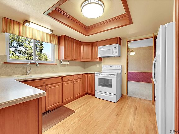 The pride of ownership stands out when you enter this well-maintained 4 bedroom, 3.5 bathroom home in Centennial. Good-sized bedrooms upstairs and an en suite bath in the primary and basement bedrooms. Solid oak hardwood flooring in the entry hall, half-bath, kitchen, and eating area. The low-maintenance exterior features vinyl siding and Champion vinyl windows. A New Roof with a transferable warranty to the new owner and a gutter guard system was installed in October 2023. All kitchen appliances and the washer and dryer are included. Beautiful front and backyard landscaping with sprinklers. The southern-facing exposure allows natural light all year long as well as helpful snow-melting assistance in winter. Newer concrete driveway, with a stamped concrete front walk and porch. The backyard patio is also stamped concrete and at 15'x24' provides ample room for your outdoor entertaining. Easy access to C-470 for those trips to the mountains. Dining and retail in the area are abundant, including The Streets At Southglenn nearby. No HOA. Virtually staged.