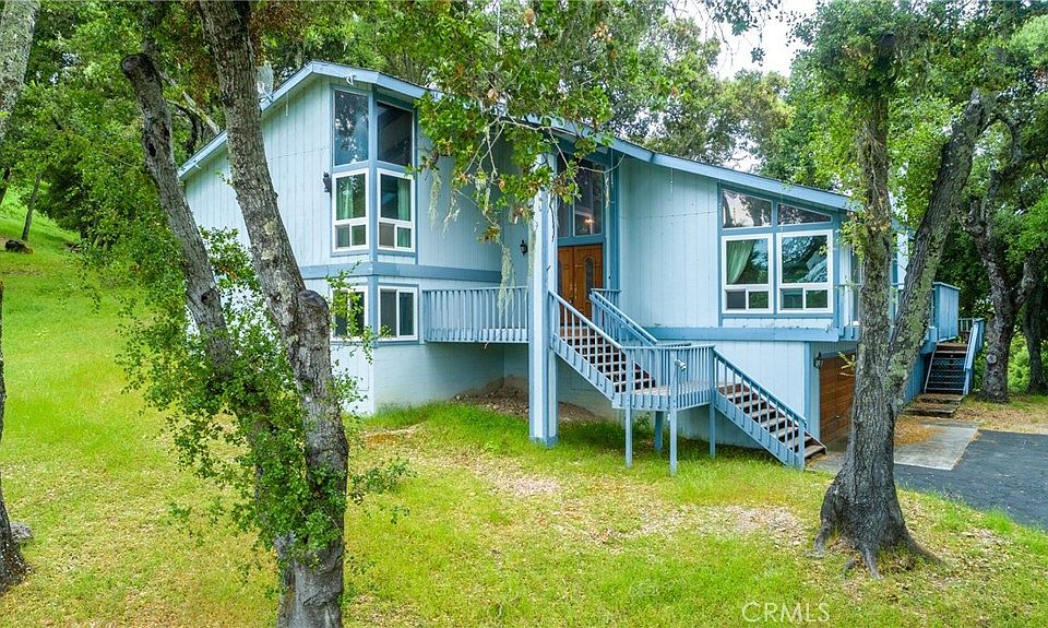 Cherished home featuring 1672 sf, 3 bedrooms, 2 bathrooms, plus a loft on 2.76 acres nestled in the hills of Atascadero. The home is exquisitely placed on the hillside and takes full advantage of the wonderful views. Stepping into the home you'll be delighted by the vaulted wood ceilings with exposed wood beams. The many windows and sliding glass doors perfectly frame the sublime views. The living room boasts laminate wood floors, wood burning fireplace, terrific vaulted ceilings and flows seamlessly into the kitchen and eating area. The bright kitchen provides ample cabinets for storage and countertop space for preparing meals. Up the stairs we find the two guest bedrooms, laundry area, remodeled full bathroom and terrific loft. The primary suite features soaring vaulted ceilings and remodeled ensuite bathroom. The home also has a hobby room complete with expansive countertop space and the flexibility to make it whatever you need it to be. Outside you'll enjoy the immense deck that is ideal for entertaining and relaxing all while drinking in the views. In addition to the attached 2 car garage there is a detached metal garage that could be used for storage or turn into a workshop. The gorgeous property is private and secluded feeling with mature oak trees and did we mention the views? This home is ready for some attention and will be a wonderful place to call home. Please see the Virtual Tour for additional information and photos.