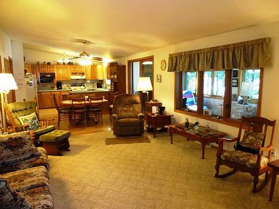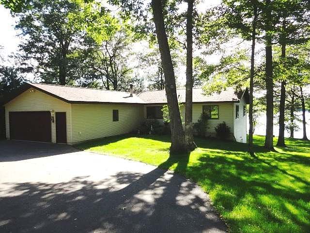 3 BR/3 BA well maintained home w/102' of beautiful, sand frontage on East Horsehead Lake! The Lake has over 190 acres of clear water w/a fishing variety including Musky, Walleye, Northern Pike, Panfish & Largemouth Bass. Outside you will find a nicely landscaped yard w/retaining wall, multiple apple trees, fenced garden, a storage shed, dog kennel, private boat launch & pier on the Lake. Inside there is an open concept KT/DR/LR floor plan & lots of windows w/lake views & walk out to a large enclosed sitting porch for enjoying bug free views of nature & the lake. The lower level has a finished family room w/warm knotty pine walls, free standing wood burning stove & a walkout to the lawn & lake. There is also a 3rd Bathroom, a large utility room w/plentiful storage space, a separate workshop that would make any hobbyist very happy. The home has Central A/C, a 2 car att garage/storage shed lake side, a circular paved driveway & is located in private lot.
