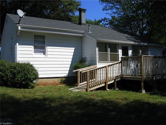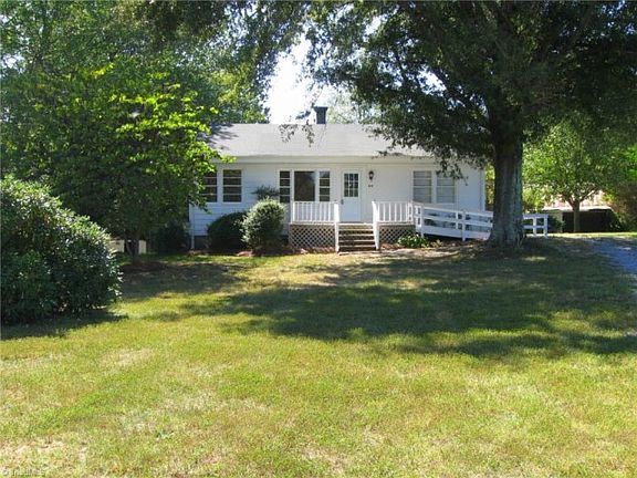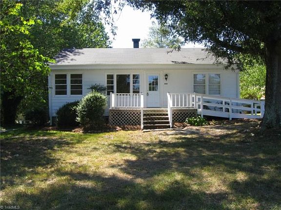 Charming updated bungalow style home. New hardwood floors throughout! New kitchen cabinets & counter tops. Stove, microwave and refrigerator to stay! Front porch with ramp and back deck with ramp. Circle driveway! Detached garage/workshop and storage buildings! Quiet neighborhood! Newer roof installed in 2013. Newer Central air unit. Cedar lined closets in Bedrooms. Vapor barrier in crawl space. Updated bathroom with walk-in shower, tile flooring and vanity. Easy Access to Highway 220/158!