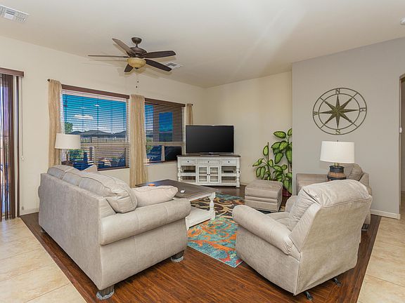 Outstanding ''Asturias'' Floor Plan by Mandalay w/2 MASTER Suites in Prestigious Pronghorn Ranch on HUGE .35 Acre Lot backing Open Space/Common Area at the end of a Private Cul de sac !!!! Features an ADA Minded 2755 Square Foot 4Bedroom/3.5Bathroom/3CarGarage + Den or potential 5th Bedroom & a Flex Room....has an OPEN/SPLIT Floor Plan, GREAT ROOM Concept, 22'' Tile & Wood Laminate throughout, Upgraded Lighting, New Interior Paint, & is Bright & Airey. Kitchen is well appointed with Knotty Alder Cabinetry, GRANITE Counter Tops, Large Island w/Sink, Excellent Appliances (Inc. Fridge) Large Pantry, & Eat In Kitchen area w/Functional Bay. CONTINUE