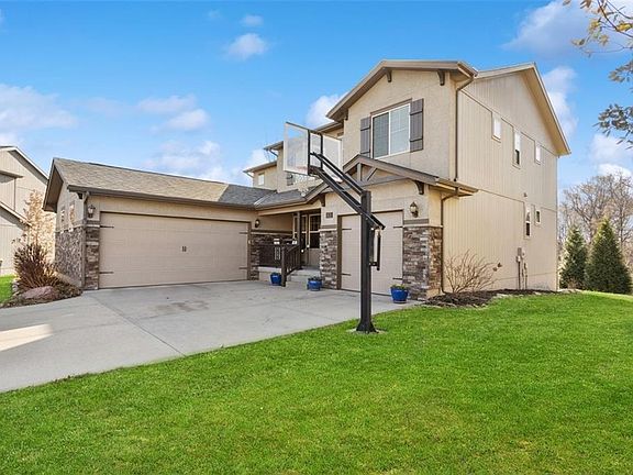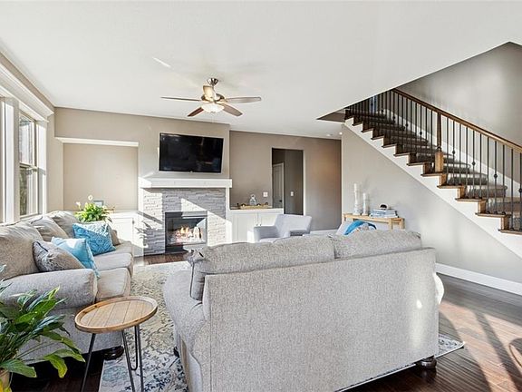 Fantastic open floor plan on private, wooded, cul de sac lot! Bright and spacious main floor offers formal dining room and office/bonus room, plus convenient mud room/laundry room. Chef's kitchen with large island, stainless steel appliances and custom cabinets. Living room with fireplace, built-ins and a wall of windows provides a great view of the lovely lot. Extra large primary suite with separate vanities, large walk-in shower and huge walk in closet. All secondary bedrooms have walk in closets. Finished basement is full of light and offers 5th bedroom, 4th full bath, 2 separate living areas, plumbed for wet bar and still has room for 2 storage rooms! New roof and gutters 2024! Unique, oversized split garages have so much extra space! Convenient location close to highways and shopping and wonderful neighborhood with 3 pools, 2 clubhouses, parks and trails!