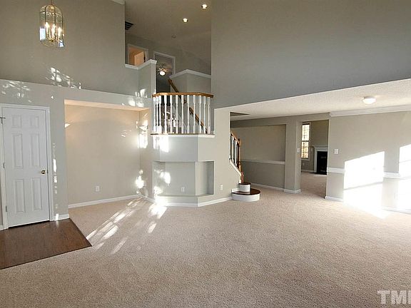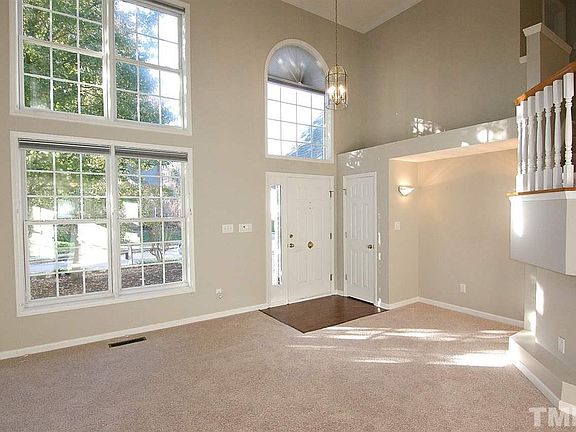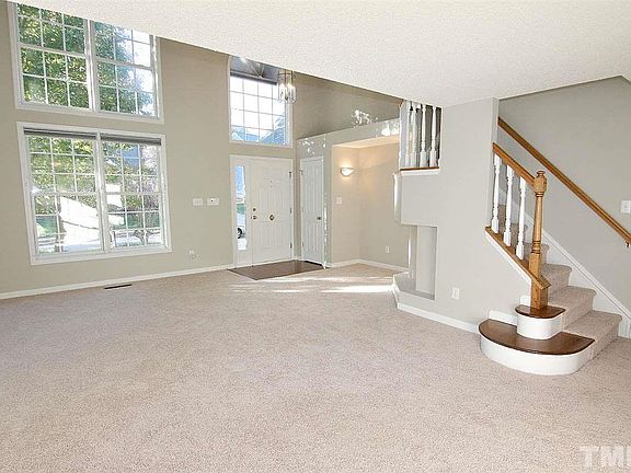 Beautifully updated transitional home with bright & open floor plan in great North Raleigh location. Freshly painted interior, new carpet & new kitchen floor. Versatile 2 story living/dining room. Family room with gas log fireplace is open to kitchen w/lots of cabinets & counter space, island, pantry & breakfast nook. 1st floor master suite has vaulted ceiling w/fan & spa-like bath w/2 sink vanity, whirlpool tub & separate shower. Spacious loft & bonus room. 2 car garage. Huge deck overlooking woods!