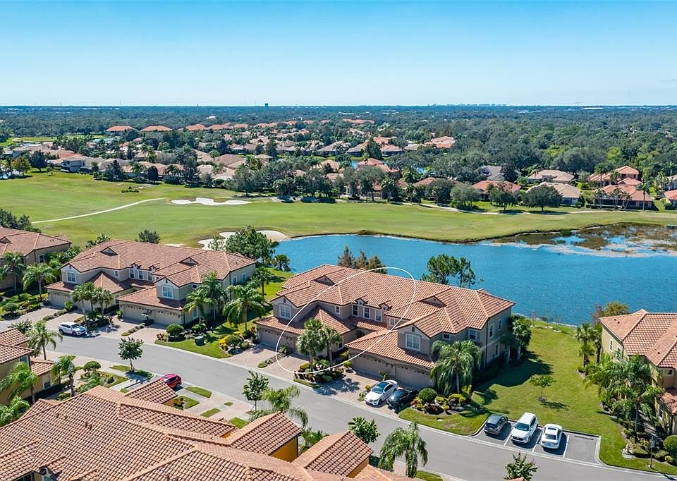 Gorgeous and immaculate move in ready, Three-bedroom, Two-and-a-half-bath 2290 Sq foot home with the Marbella floor plan, that rarely comes to market. Ideal for year-round or snowbird maintenance-free living. First floor Primary Bedroom with an En-Suite and two walk-in closets. The Contemporary gourmet kitchen has white wood cabinetry, and attractive granite counters. Impressive sunset views of the lake and manicured Legacy Golf Course. Your guests will love the privacy and comfort of the second floor, with two nice size guest bedrooms, an additional family/rec room area, and a full bath. The two-car garage also has plenty of storage. The active neighborhood Clubhouse offers many social events as well as a Fitness Center, large heated pool and spa areas, Outdoor Kitchen, Tiki Bar, Gazebo overlooking a lovely lake. Easily connect via a private owners entrance to Lakewood Ranch Golf and CC with it's three top notch golf courses, championship tennis and athletic center, and the large main club house. Moments away from the original downtown Lakewood Ranch, the new Lakewood Ranch Waterside bustling downtown area, University Town Center with its world class shopping and restaurants. Easy drive to the cultural gem of downtown Sarasota, Asolo Repertory Theatre, Van Wezel Performing Arts Center, Sarasota Opera House, FST, Ringling Museum. This home represents the very best of Gulf Coast Living!