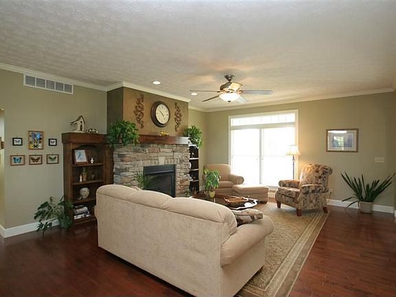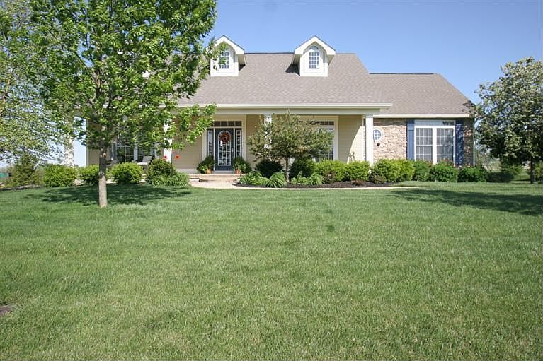 Wow! Enjoy this elegant, custom built Cape Cod with over 2730 sqft including finished basement, situated on 1.25 acres. Split bedroom floor design with Guest Suite downstairs! Open floor plan allows nice flow from kitchen to family room. Kitchen has upgraded stainless steel appliances, walk in pantry, command center, granite kitchen countertops with high backsplash, and brushed nickel hardware are just a few of the superior finishes. Large windows with transoms above allow for plenty of natural light. The home is situated perfectly to enjoy many sunrises and sunsets, with front of house facing West. Enjoy the finished basement with guest suite, full bath, family room with custom built book shelves around the stone flanked fireplace, office area, and unfinished storage space. Spacious heated 4 car garage. Outside, the walkways offer stamped concrete throughout the front and back with the hot tub being terraced into the patio. Great value, great location and in great shape!