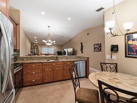 You will love this charming, 2 bedroom, 2 bath, 1 car garage corner unit villa.. From the moment you enter this home you will notice the stunning marble flooring and the abundance of natural light. Entertain with ease with a living room, dining room and enclosed patio. Updated chef's kitchen with new cabinets, granite countertops, tiled backsplash, stainless steel appliances and a breakfast nook. Spacious master retreat features a slider to the patio, his and her closets, dual sinks with granite counter and a walk-in shower. Relax on the private enclosed patio overlooking the private yard. This home features a great open floorplan with neutral decor, vaulted ceiling, high hat lighting, extra storage under the snack bar and a NEW A/C
