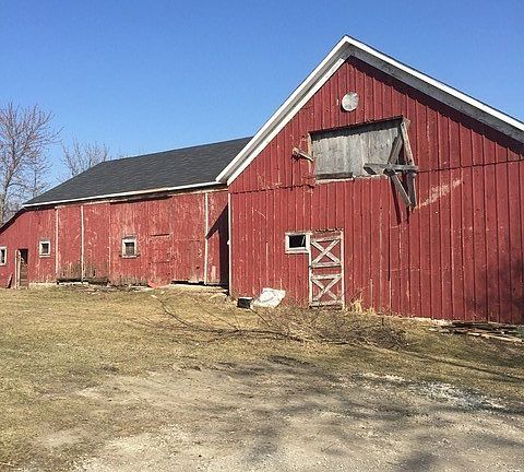 Value is in the land and buildings. Home on property is gutted. Most likely a knock down unless someone is up for a challenge. Huge barn with new roof , corn crib, and pole barn on property. Sit's high on 6 1/2 acres. Seller says house can be fixed, there is water and septic along with electric to the site. Buyers must be accompanied by an agent to walk and view the property.