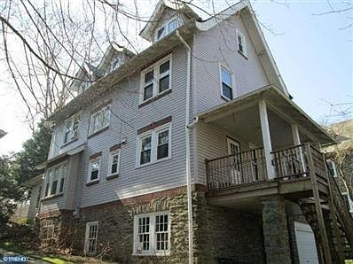 Wonderful family home in sought-after Elkins Park. This lovingly maintained home has unique architectural details and hardwood floors throughout. It features a formal living room with fireplace a formal dining room and a spacious eat-in kitchen with new stainless steel appliances. French doors lead to sun room/sitting room with separate entrance. Fireplace is 2 sided and is exposed in the finished side in this room and the living room. Powder room and coat closet in entry foyer. Many new windows throughout. The kitchen opens up onto a lovely back deck on which you can sit and enjoy the beautiful changing seasons. A turned stairway leads to 3 bedrooms on the 2nd floor and 2 spacious bedrooms on the 3rd floor. The main bedroom is very large and has 3 closets. This is a 5 bedroom 2.5 bath home with amazing closet and storage space. There is a large open basement new hot water heater (2011) and new HVAC system (2011). A MUST SEE!!