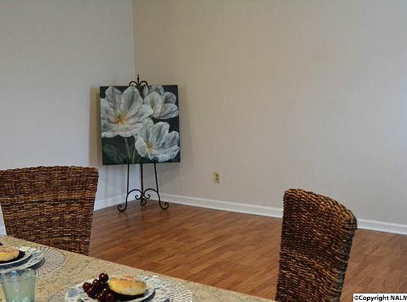 Beautiful open floor plan condo in SE Huntsville minutes from Redstone Arsenal & shopping. Freshly painted, new laminate flooring throughout, new fixtures , new stove & fan as well as a practical island with seating for two and extra storage. Washer & dryer included. Enjoy this quiet location with non-thru traffic and a private patio in the rear with an exterior storage closet. This home is great for those seeking a low maintenance style of living like the busy professional, retiree or an investor. The HOA keep the grounds pristine .Remove shoes or slip on shoe covers per sellers request.