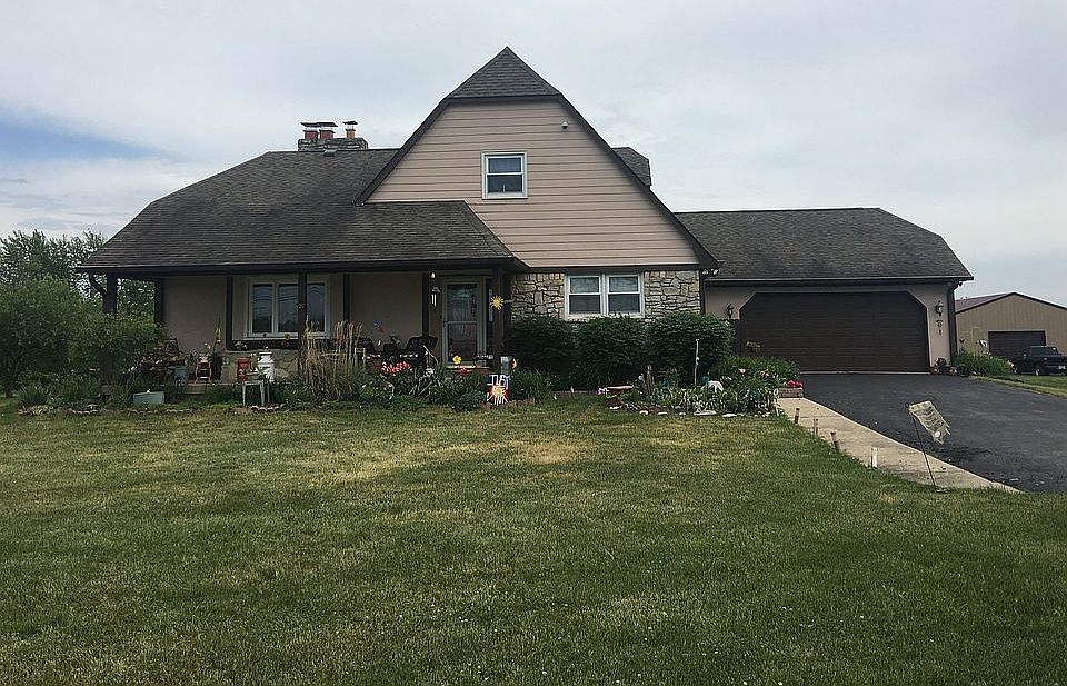 1/2 basement partially finished 2 fireplaces 2 covered porches40x40 pole barn 40x40 less than 4 yrs old 2 storage blogs front and rear Above ground 24’ pool with nice total deck, hot tin 40 ft x 60 ft pole barn with 2 overhead doors and side porch , electricity with separate meter 200 amp service Windows and sky roofs and concrete floor 2 walk in closets Kitchen remodel 2012 Hardwood floors Living room dining room and both baths Hardy board installed 2012 low maintenance